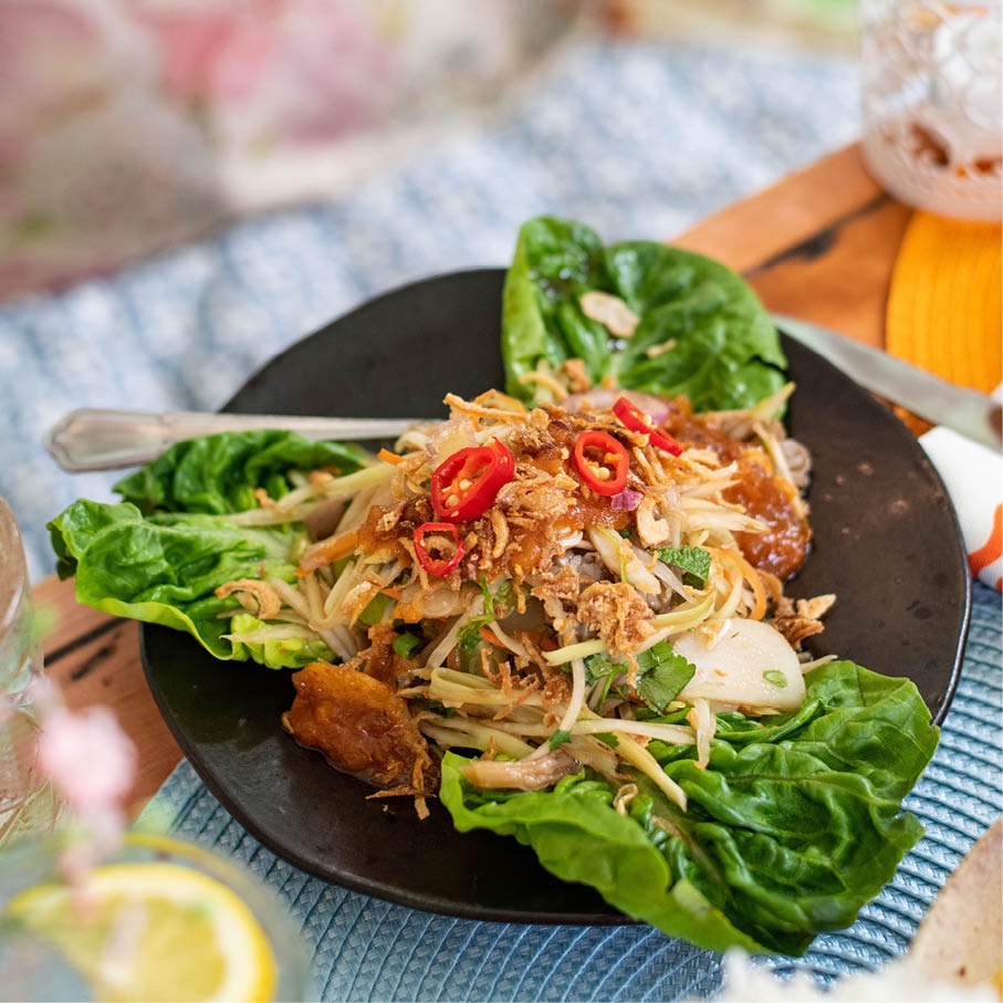 Enjoy the complex yet harmonious flavours of Pad Thai (with chicken, vegetarian or vegan options available), together with a refreshing Chang beer or a soft drink to complete your meal.